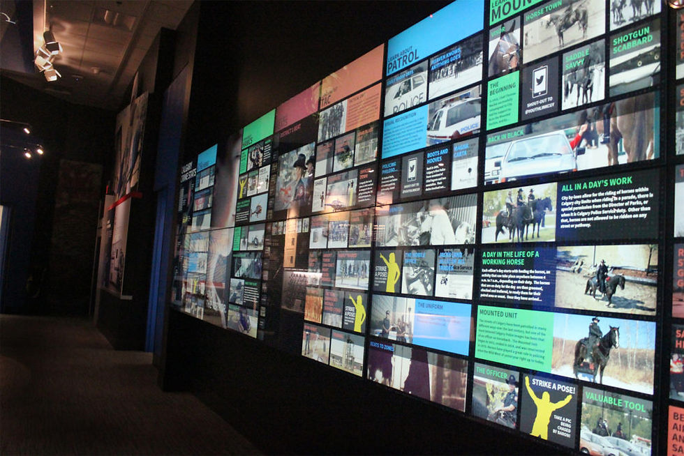 Built using 10 – 55″ screens to provide visitors of the facility an engaging way to experience and learn about the history of the Calgary Police Services.